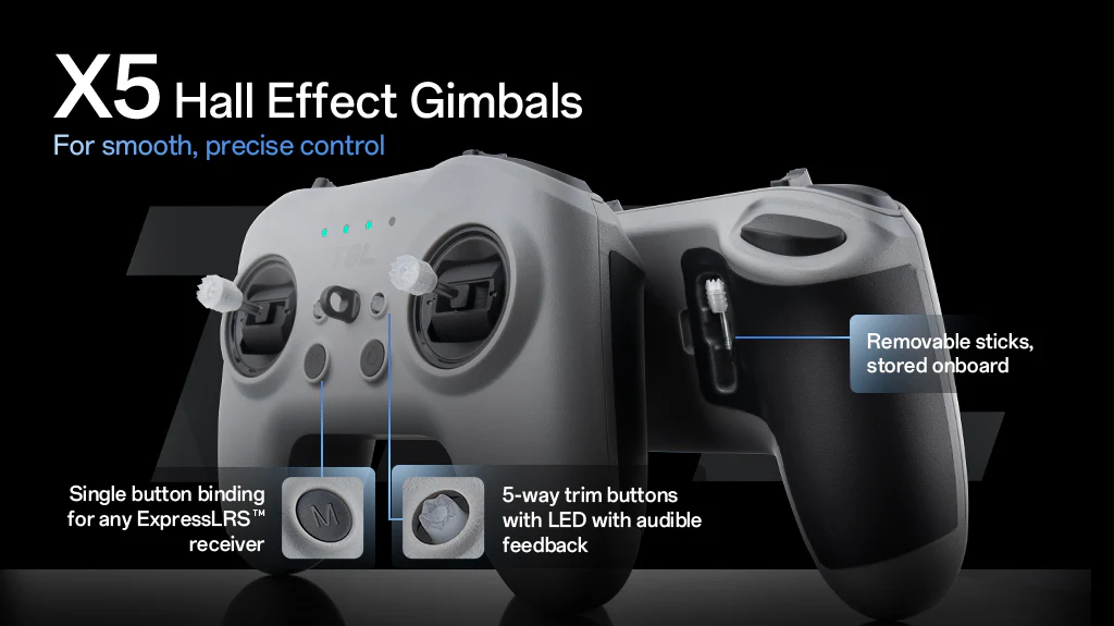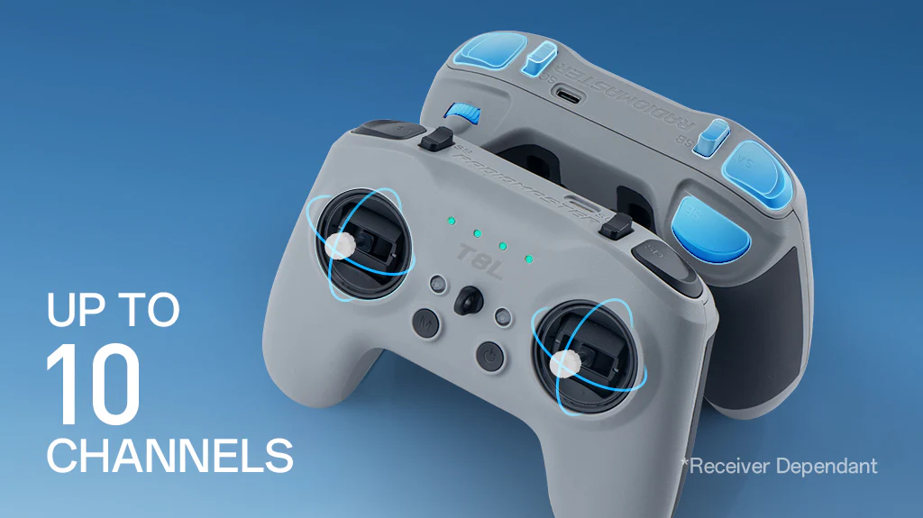 The RadioMaster T8L brings the power of ExpressLRS 2.4GHz into a clean, compact form — and is the first screenless radio controller officially supported by ExpressLRS.