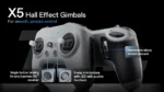 • Gimbal: X5 Hall-effect, quad ball-bearing, nano gimbals